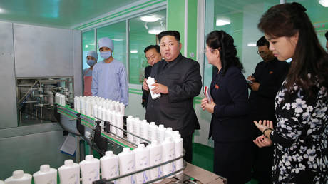 Ο Κιμ και η σύζυγός του σε μια σπάνια δημόσια εμφάνιση σε εργοστάσιο καλλυντικών (pics)