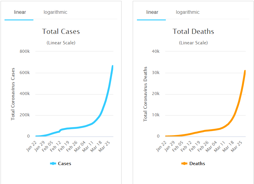 Συνεχίζει να θερίζει η πανδημία σε παγκόσμια κλίμακα. Τα κρούσματα αυξάνονται εκθετικά μέρα με την ημέρα και οι νεκροί πλέον έχουν ξεπεράσει κατά πολύ τις 30.000 παγκοσμίως.