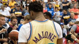 Ο Ντόνοβαν Μίτσελ παρακολουθεί τους Τζαζ στο Summer League φορώντας εμφάνιση του Καρλ Μαλόουν.