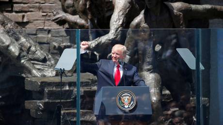 Ο Αμερικανός πρόεδρος Ντόναλντ Τραμπ στην διάρκεια κοινής συνέντευξης Τύπου με τον πρόεδρο της Πολωνίας Αντρέι Ντούντα,…