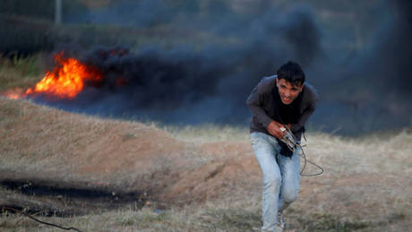 Ένας παλαιστίνιος δημοσιογράφος που επλήγη χθες 6 Απριλίου από πυρά ισραηλινών στρατιωτών κατά τη διάρκεια των διαδηλώσεων…