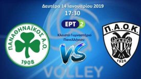 Στο γυμναστήριο του Πανελληνίου ο Παναθηναϊκός θα αντιμετωπίσει τον ΠΑΟΚ στο ντέρμπι κορυφής που μάλιστα θα γίνει στη σκιά του πένθους για την απώλεια της συζύγου του προπονητή του Παναθηναϊκού και την Εθνικής ανδρών. (12η αγωνιστική, 14/1, 17.30, Διαιτητές: Κουτσούλας, Ονόπας,, ΕΡΤ2).