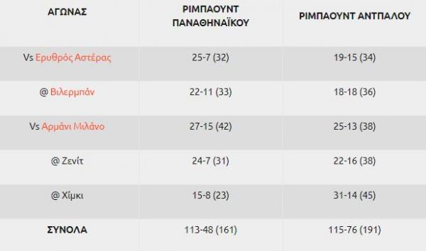 Οι επιδόσεις του Παναθηναϊκού στα ριμπάουντ (Αμυντικά- Επιθετικά):