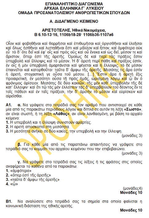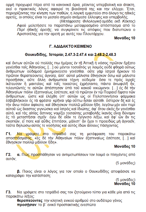 Παρακάτω μπορείτε να δείτε προτεινόμενο θέμα Πανελληνίων εξετάσεων για την Αρχαία Ελληνική Γλώσσα