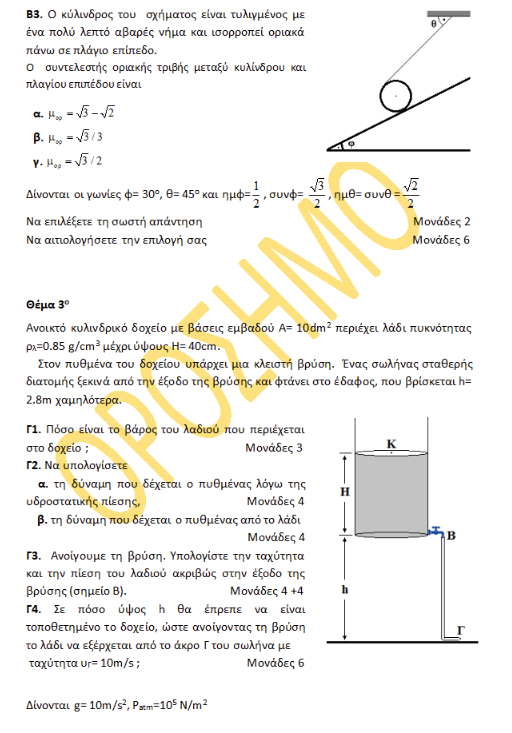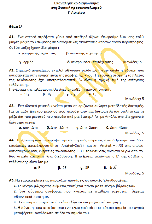 Παρακάτω μπορείτε να δείτε προτεινόμενο θέμα Πανελληνίων εξετάσεων για τη Φυσική Προσανατολισμού.
