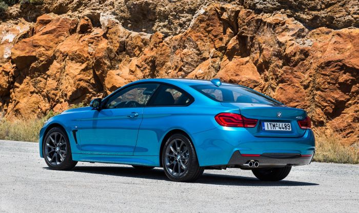 Δύο νέα εξωτερικά χρώματα Snapper Rocks Blue και Sunset Orange διατίθενται αποκλειστικά για τα μοντέλα της νέας BMW Σειράς 4, ενώ υπάρχουν και νέα σχέδια ζαντών ειδικά για κάθε έκδοση εξοπλισμού Advantage, Sport Line, Luxury Line και M Sport.