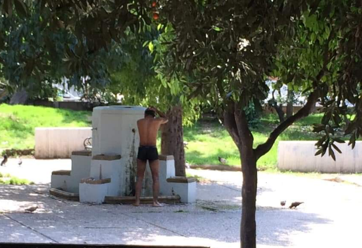 «Μεσημέρι Μ.Τετάρτη και στην πλατεία Κλαυθμώνος, στην κάτω πλευρά της πλατείας, στο 1ο Δημοτικό Διαμέρισμα, κέντρο Αθήνας, ένας Πακιστανός στη δημόσια βρύση, έπαιρνε το ….. μπάνιο του με σαμπουάν, χωρίς να δείχνει να τον ενοχλεί η δημόσια θέα. Εμείς για να βγούμε πρέπει να στείλουμε μήνυμα να πάρουμε ταυτότητα να έχουμε ΑΦΜ και «πρόχειρα» 150 ευρώ σε περίπτωση που κάτι …… δεν πάει καλά στον έλεγχο. Και Μένουμε Σπίτι και τις εξωτερικές δουλειές τις έχουμε ξεχάσει και μήνυμα στέλνουμε και ταυτότητα έχουμε και το ΑΦΜ για τον έλεγχο.