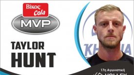 Ο Καναδός διαγώνιος του Α.Ο.Π.Κηφισιάς Τέιλορ Χαντ αναδείχτηκε πολυτιμότερος αθλητής της 17ης αγωνιστικής του πρωταθλήματος Volley League 2018-19.