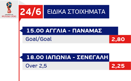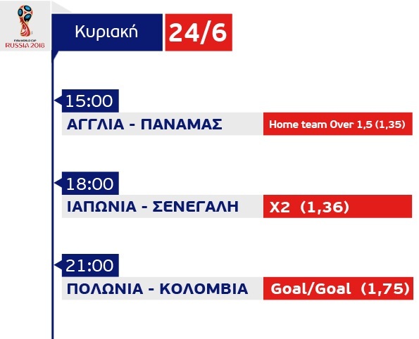 Εάν υποθέσουμε πως η Αγγλία είναι το πιο ξεκάθαρο φαβορί απόψε, είναι αλήθεια πως στους δύο άλλους αγώνες τα πάντα είναι πιθανά κι ας υπερτερούν ποιοτικά η Κολομβία και η Σενεγάλη.