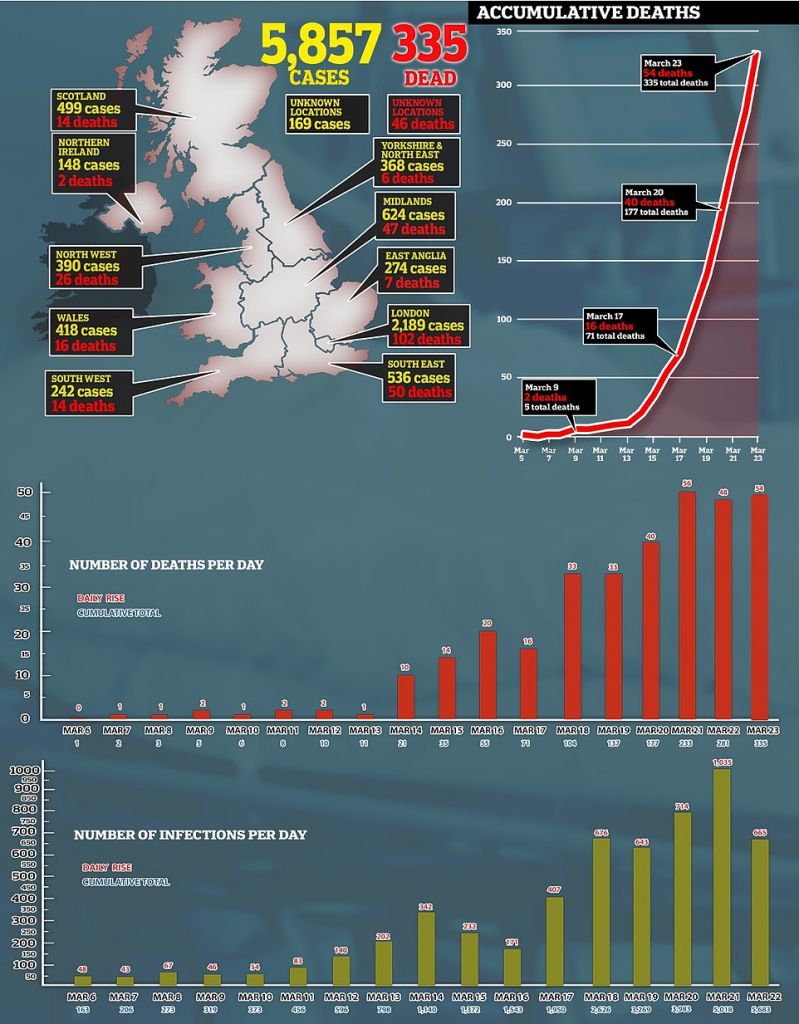 Έτσι, πλέον, η Βρετανία αριθμεί 335 νεκρούς και περίπου 6.000 κρούσματα.