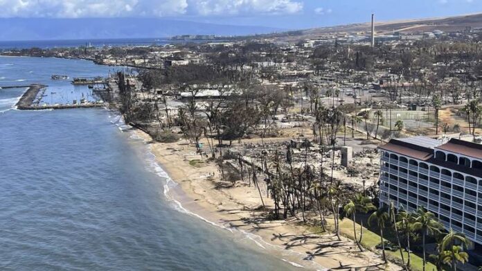 Η Λαχάινα, στα δυτικά παράλια του Μάουι, καταστράφηκε σχεδόν όλη από τις φλόγες. Χιλιάδες κτίρια καταστράφηκαν, πολλά μετατράπηκαν σε γκρίζους σωρούς στάχτης.
