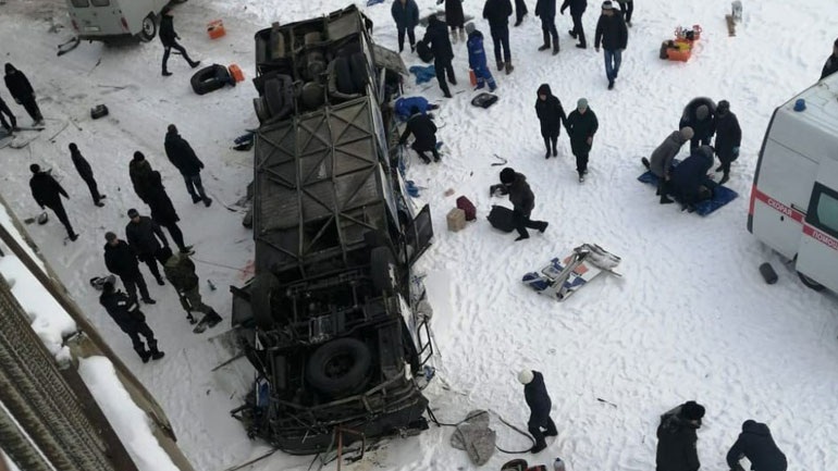 Το υπουργείο Εκτάκτων Καταστάσεων της Ρωσίας ανέφερε σε μια ανακοίνωση που αναρτήθηκε στον ιστότοπό του ότι το λεωφορείο, που είχε ξεκινήσει από την πόλη Σρέτενσκ και κατευθυνόταν στην πόλη Τσίτα, 6.320 χλμ. ανατολικά της Μόσχας, έπεσε από τη γέφυρα στον ποταμό Κουένγκα γύρω στις 09:38 ώρα Μόσχας (08:38 ώρα Ελλάδας).