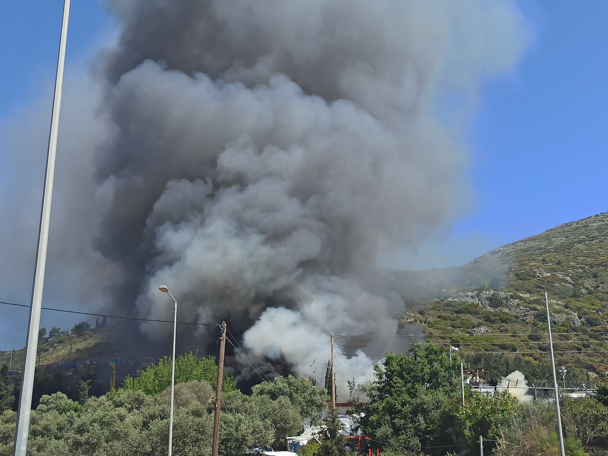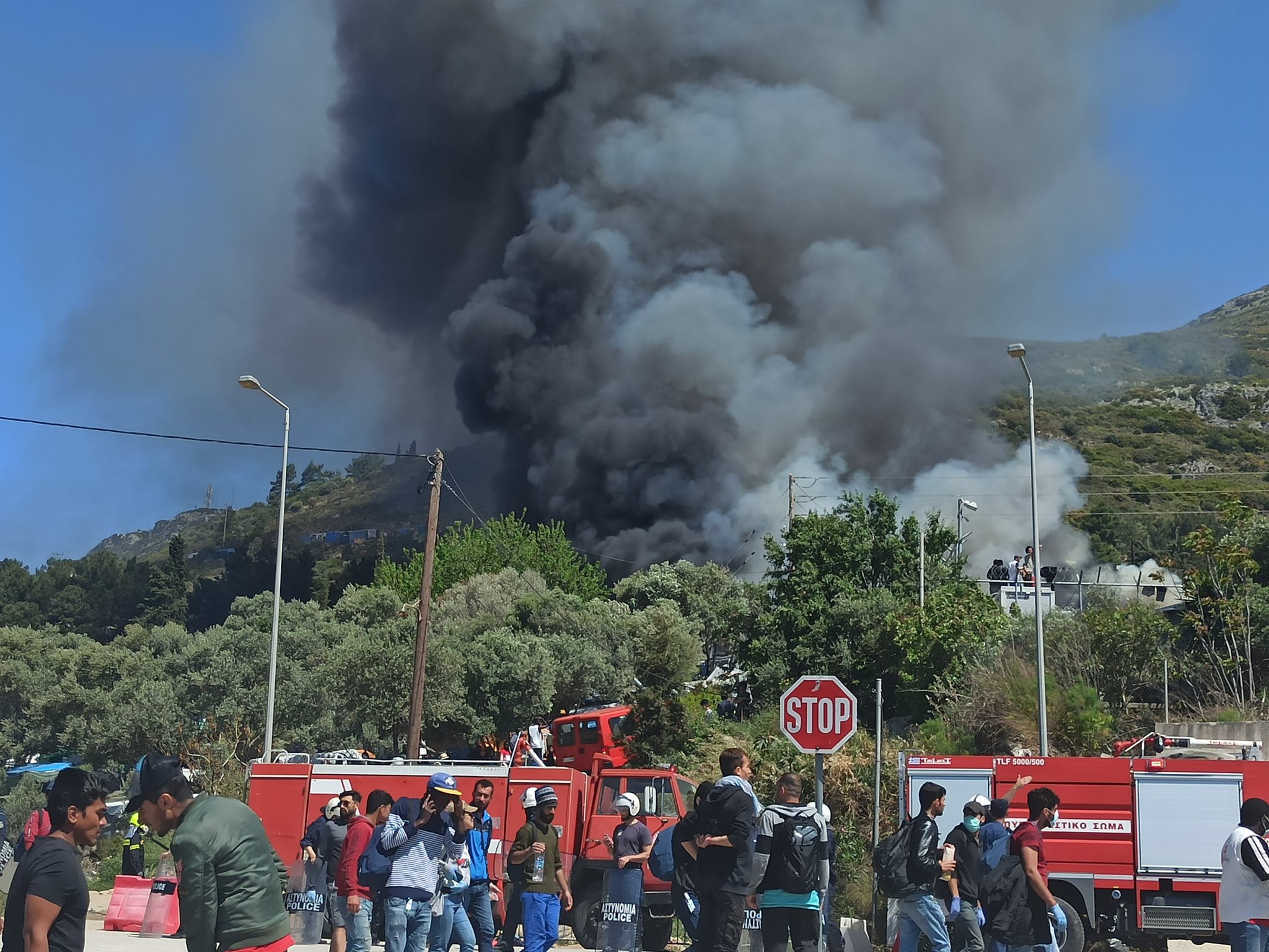 Οι χθεσινές φωτιές ξέσπασαν στον καταυλισμό αιτούντων άσυλο περιμετρικά του Κέντρου Υποδοχής και Ταυτοποίησης και πήραν σύντομα διαστάσεις λόγω των εύφλεκτων υλικών αλλά και των φιαλών υγραερίου που υπάρχουν μέσα στις σκηνές για μαγείρεμα.