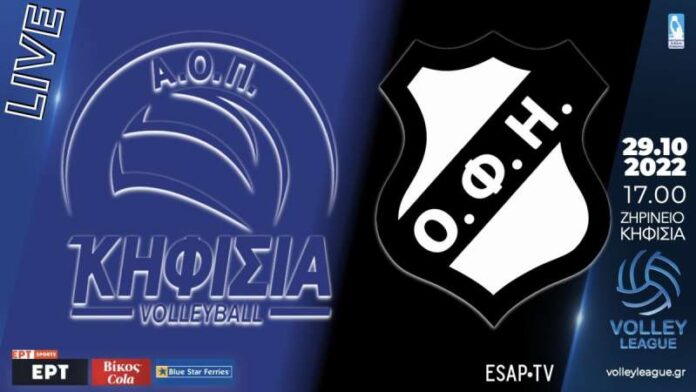 To ντέρμπι μεταξύ του Α.Ο.Π. Κηφισιάς και του Ο.Φ.Η. που θα γίνει στο Ζηρίνειο είναι από τα πιο αμφίρροπα ματς της 2ης αγωνιστικής της Volley League (2η αγωνιστική, 29/10, 17:00, Live Streaming ESAP TV, Διαιτητές: Βουδούρης, Νικάκης,).
