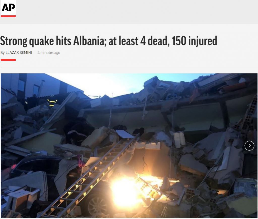 Όσο περνούν οι ώρες γίνονται πλέον φανερές οι καταστροφικές διαστάσεις του σεισμού που έπληξε σήμερα λίγο πριν από τις 4 τα ξημερώματα (τοπική ώρα· 05:00 ώρα Ελλάδας) την Αλβανία, με επίκεντρο περιοχή ανάμεσα στα Τίρανα και την παραλιακή πόλη του Δυρραχίου.