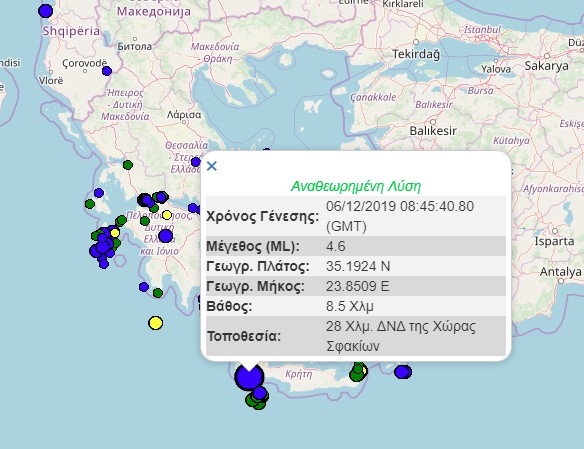 Ειδικότερα ο σεισμός σημειώθηκε νοτιοδυτικά των Σφακίων και σύμφωνα με τις πρώτες πληροφορίες έγινε αισθητός σε Χανιά, Ρέθυμνο, Ηράκλειο και Λασίθι.