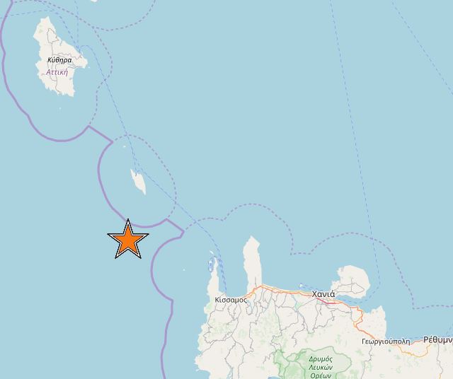 Σεισμική δόνηση μεγέθους 6,1 βαθμών της κλίμακας Ρίχτερ σημειώθηκε στις 09:23 στη θαλάσσια περιοχή μεταξύ Κυθήρων και Κρήτης.