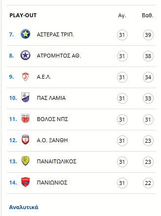 Τρία παιχνίδια για τα πλέι άουτ, τρεις ισοπαλίες. Στη Φθιώτιδα το Λαμία και Ξάνθη ήρθε 0-0, όπως επίσης και το παιχνίδι ΑΕΛ – Ατρόμητος, που έγινε στη Θεσσαλία. Στο «χ» έκατσε η μπίλια και στο Ατρόμητος – Παναιτωλικός, με τι δύο ομάδες να έρχονται ισόπαλες 2-2.