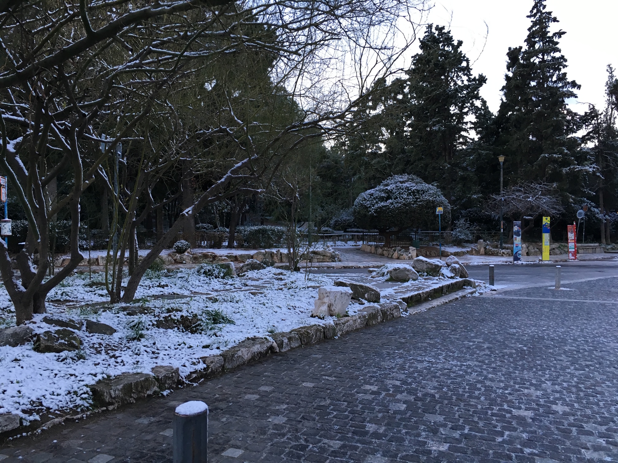 Στα λευκά «έντυσε» την Αττική ο «Τηλέμαχος» με χιόνια να πέφτουν ακόμα και στην Ακρόπολη και να δημιουργούν ένα μαγικό τοπίο, αλλά και προβλήματα.