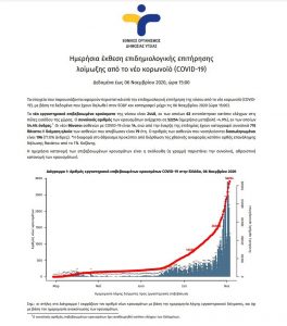 Τέλος, έχουμε 14 ακόμα καταγεγραμμένους θανάτους και 715* θανάτους συνολικά στη χώρα. 279 (39.0%) γυναίκες και οι υπόλοιποι άνδρες. Η διάμεση ηλικία των θανόντων συμπολιτών μας ήταν τα 79 έτη και το 96.5% είχε κάποιο υποκείμενο νόσημα ή/και ηλικία…