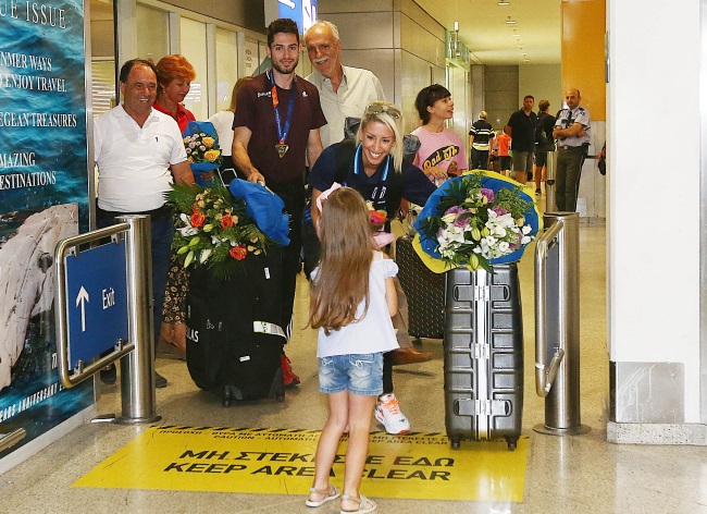Οι νέοι πρωταθλητές Ευρώπης Μίλτος Τεντόγλου και Βούλα Παπαχρήστου επέστρεψαν την Κυριακή στην Ελλάδα.
