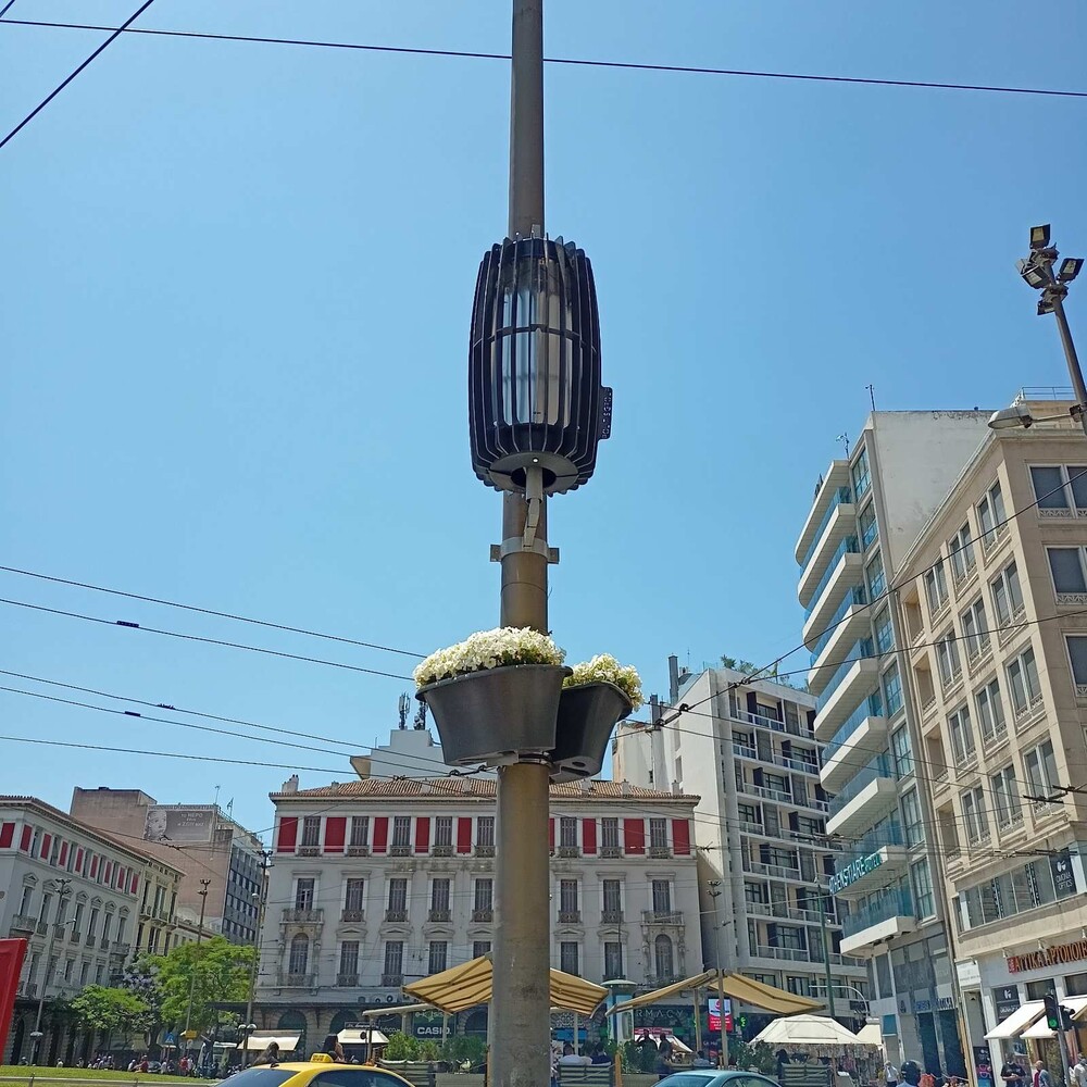 Συσκευές που καθαρίζουν τον αέρα – «ισοδύναμες με 30 δένδρα» – τοποθετήθηκαν στην πλατεία Ομονοίας, την ώρα που το κέντρο της Αθήνας «ασφυκτιά» από το τσιμέντο και την ατμοσφαιρική ρύπανση.