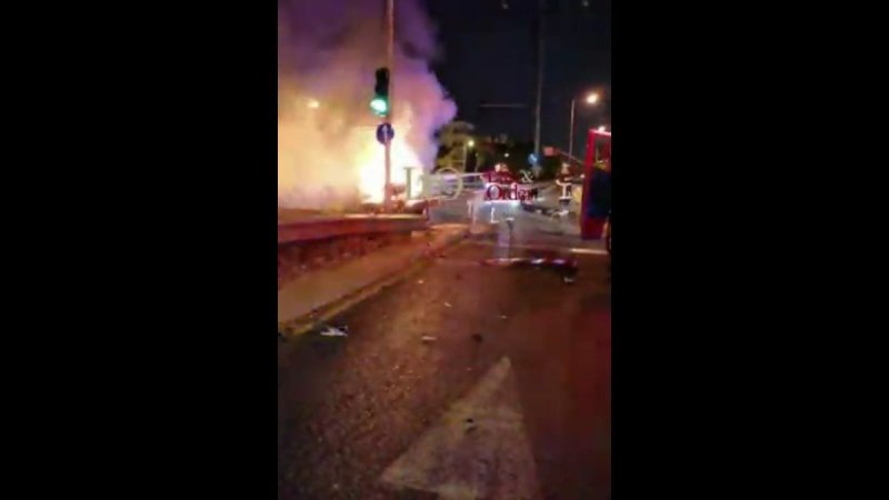 Μαύρο Skoda Octavia προσέκρουσε με μεγάλη ταχύτητα πάνω σε κολώνα της ΔΕΗ και έπιασε φωτιά, με αποτέλεσμα ο πυλώνας να πέσει στο οδόστρωμα εμποδίζοντας την κυκλοφορία και στα δύο ρεύματα.
