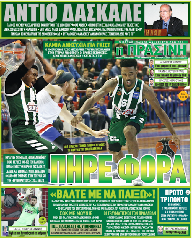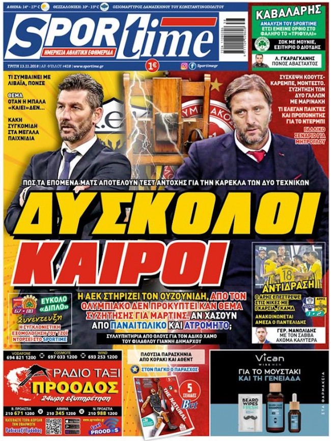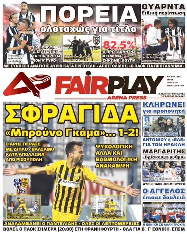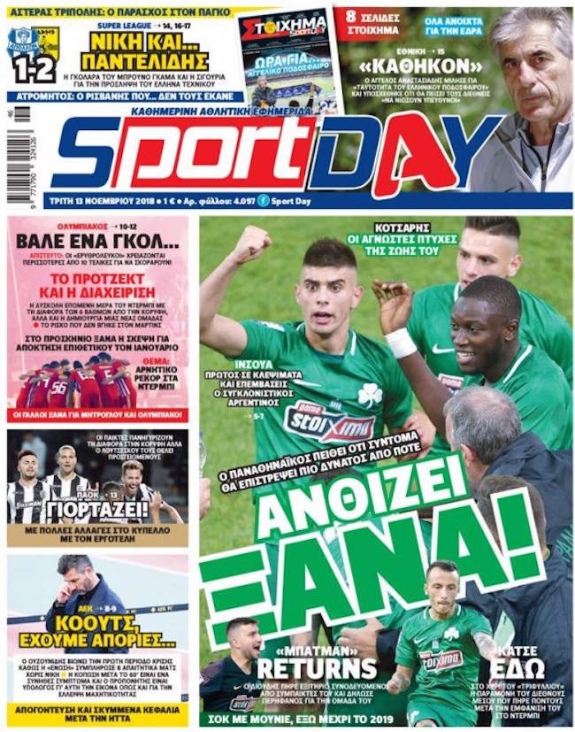 Δείτε τα πρωτοσέλιδα των αθλητικών εφημερίδων που θα κυκλοφορήσουν την Τρίτη 13 Νοεμβρίου του 2018.