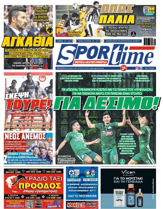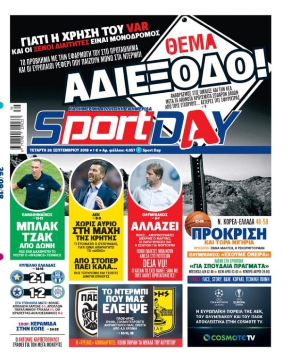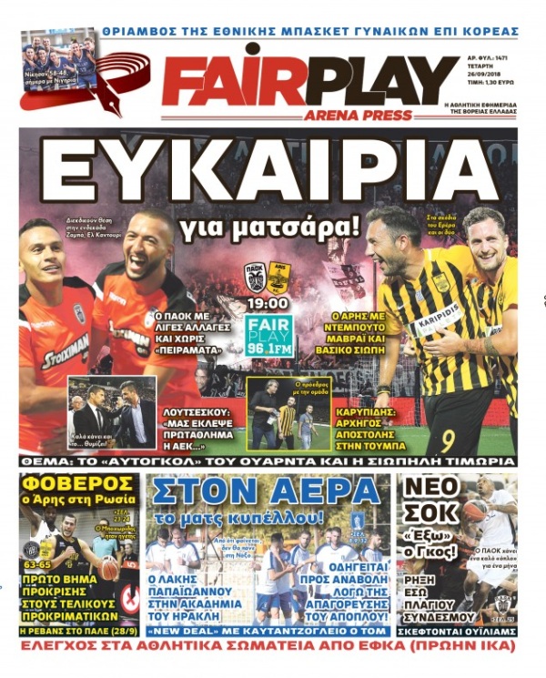 Το ντέρμπι ΠΑΟΚ – Άρης στο κύπελλο Ελλάδος, τα νέα των άλλων μεγάλων ομάδων αλλά και η προετοιμασία των εκπροσώπων μας στην Ευρωλίγκα αποτελούν τα βασικά σημεία για τα σημερινά πρωτοσέλιδα του αθλητικού Τύπου