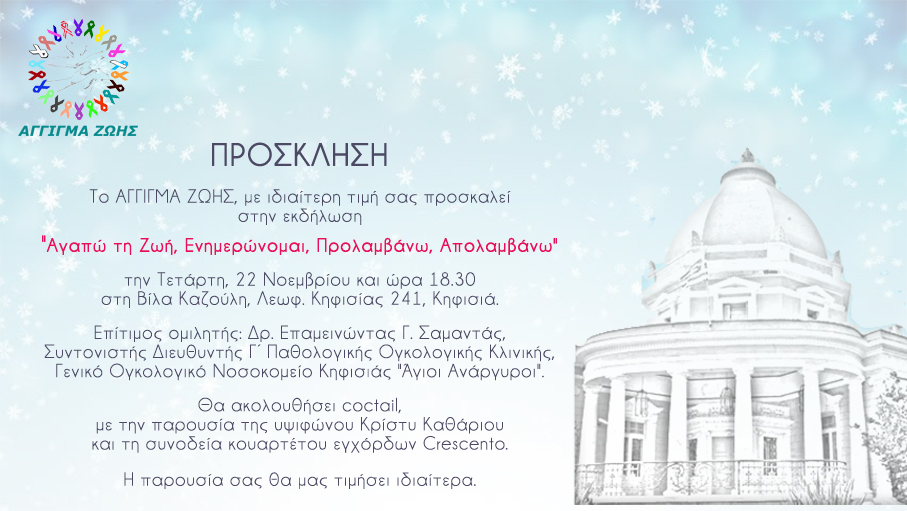 Το άγγιγμα ζωής μας προσκαλεί απόψε 22/11 στη Βίλα Καζούλη.