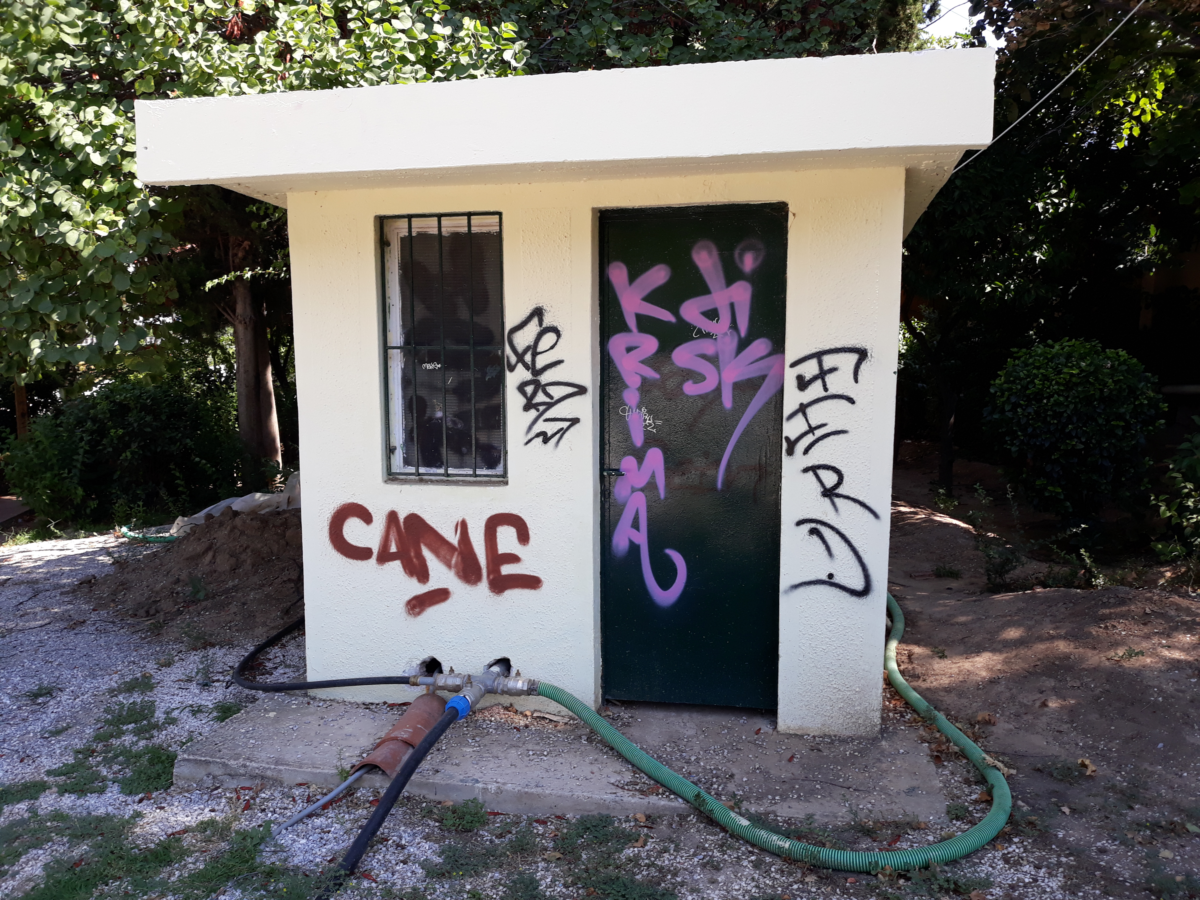παντού χρώμα και sray στο σπιτάκι μέσα στο Άλσος