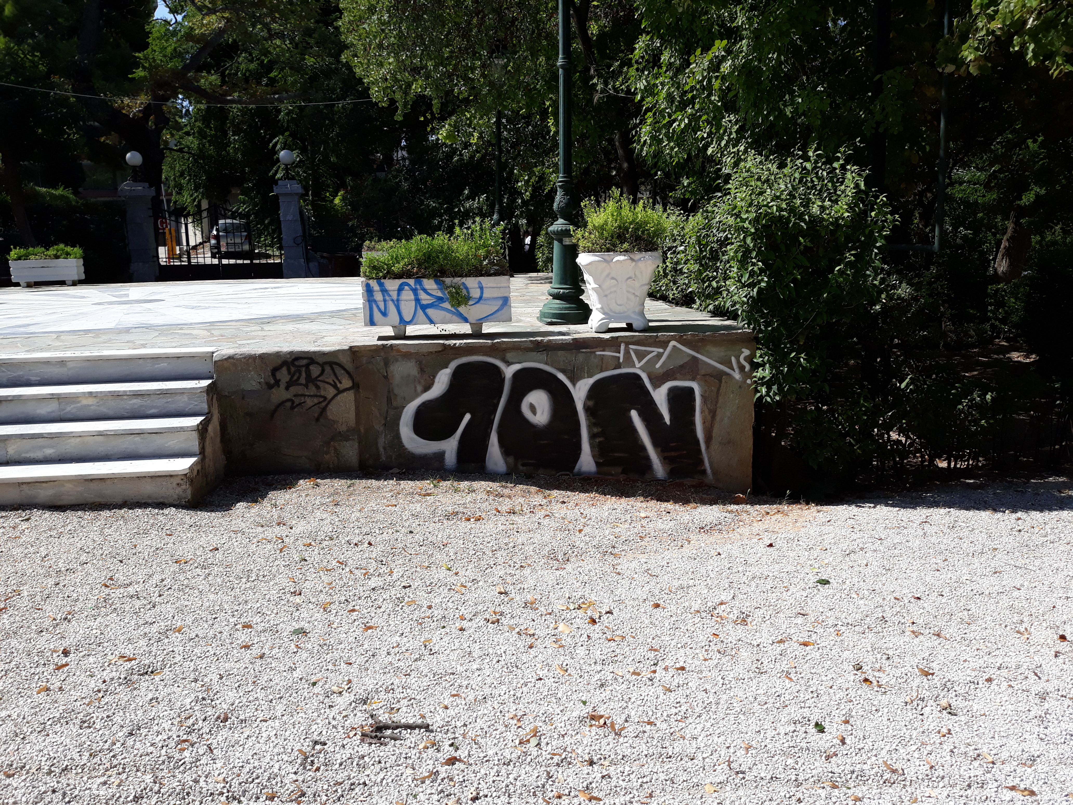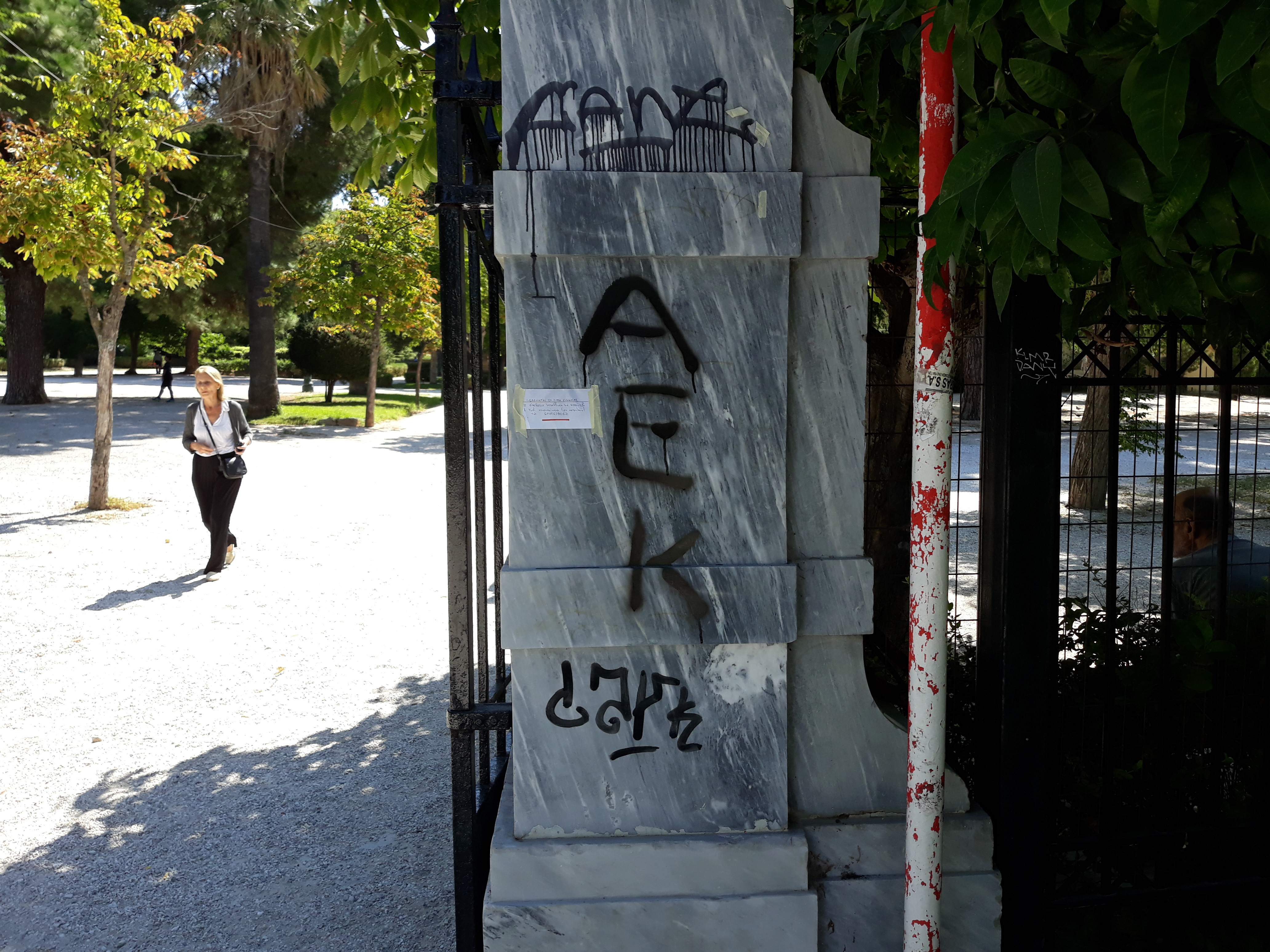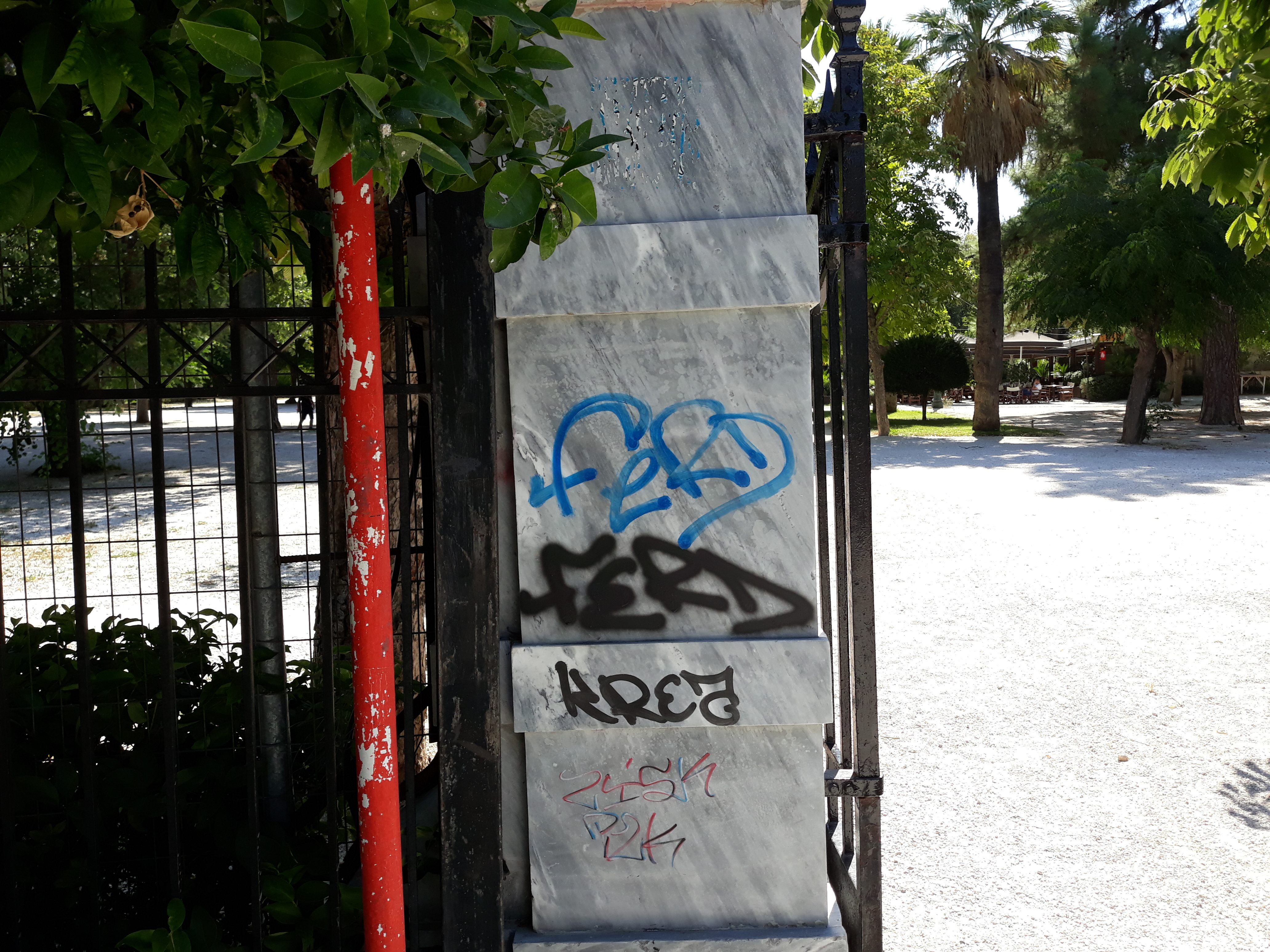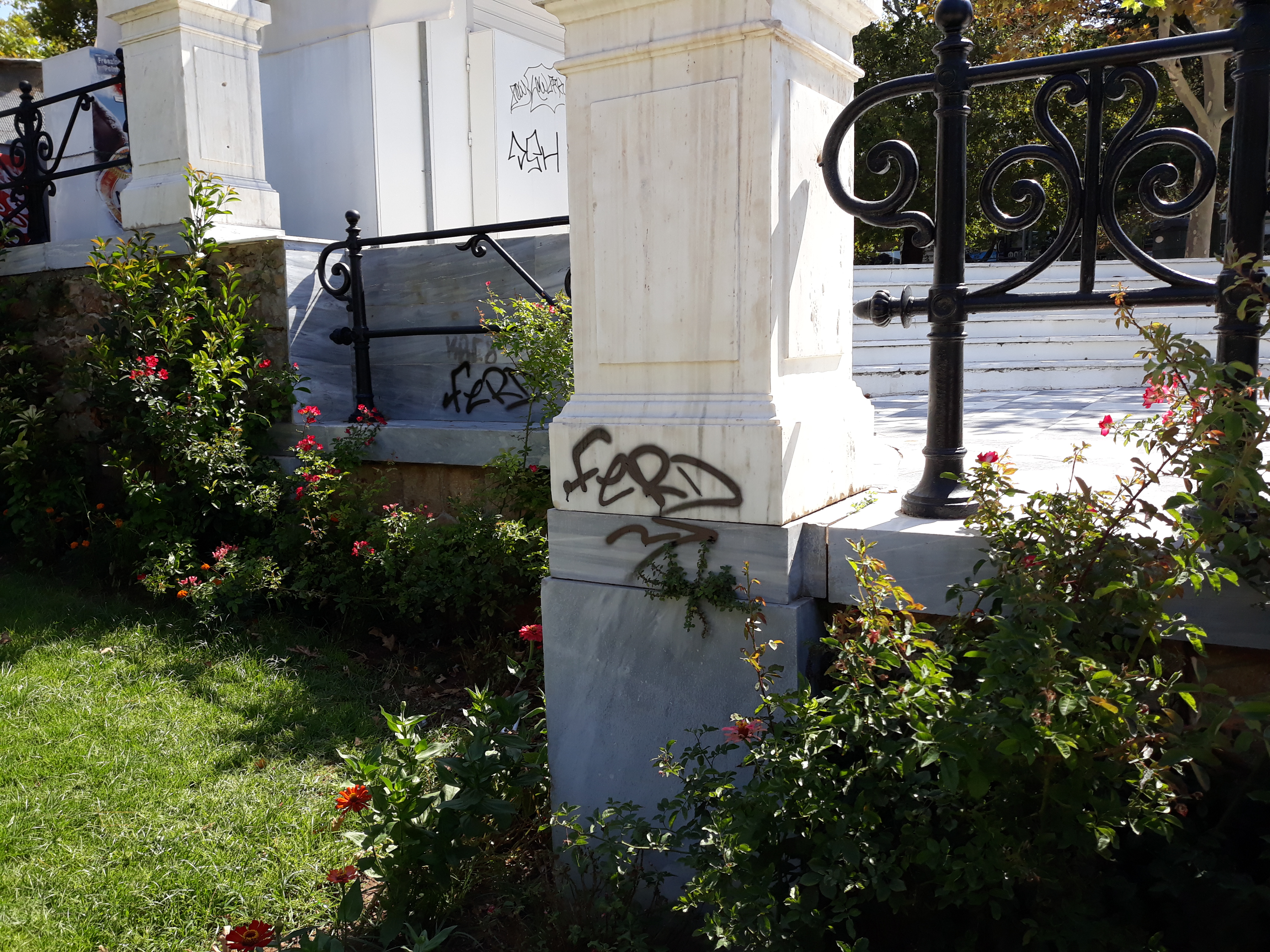 τα μάρμαρα στην κεντρική πύλη του Άλσους