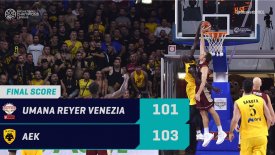 Απίστευτο το φινάλε του αγώνα της ΑΕΚ με την Βενέτσια στην Ιταλία όπου η Ένωση επικράτησε με 103-101 στην παράταση.
