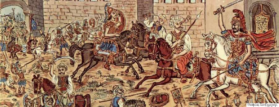 Ενώ μία ομάδα Κρητικών πολεμιστών μετακινείται από την Χρυσή Πύλη στην πύλη του Ρωμανού , για να καλυφθούν τα κενά.