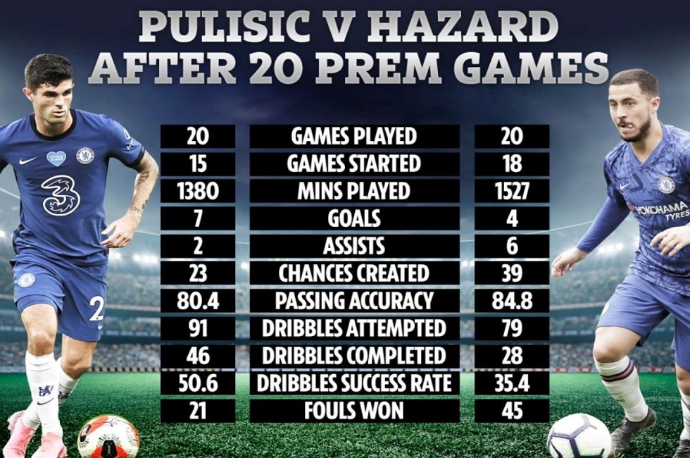 Σύμφωνα με τα στατιστικά της SunSport, ο Πούλισιτς έχει πετύχει επτά γκολ στα πρώτα 20 παιχνίδια στο πρωτάθλημα, την ώρα που σε ισάριθμα ματς ο Αζάρ είχε τέσσερα.