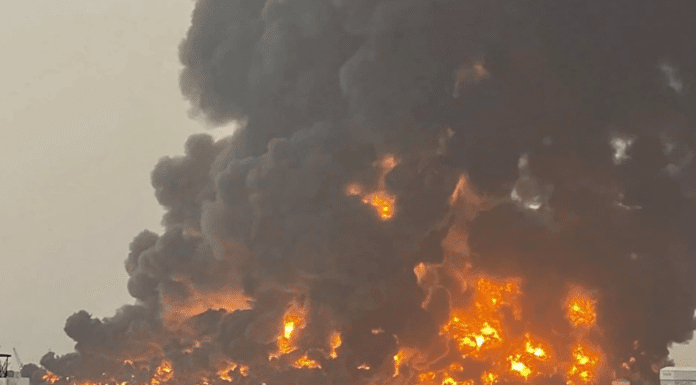Οι αεροπορικοί βομβαρδισμοί προκάλεσαν τεράστια φωτιά και τεράστιες ζημιές στο λιμάνι. Μια πελώρια στήλη μαύρου καπνού υψωνόταν στον ουρανό, σύμφωνα με εικόνες του Al-Massirah. «Ομάδες πολιτικής άμυνας και πυροσβέστες προσπαθούν να σβήσουν τη φωτιά που καίει δεξαμενές πετρελαίου του λιμανιού», μετέδωσε.