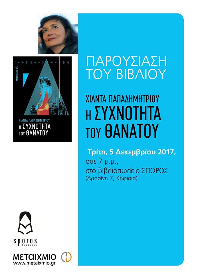 σας προσκαλούν στην παρουσίαση του νέου αστυνομικού μυθιστορήματος της Χίλντας Παπαδημητρίου