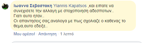 Μάταια προσπάθησε ο Γιάννης Καπάτσος να εξηγήσει ότι δε δίνει το όνομα της παθούσης προκειμένου να αποφύγει τον κανιβαλισμό που βεβαίως δεν απέφυγε η αρχική του ανάρτηση.