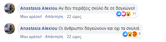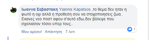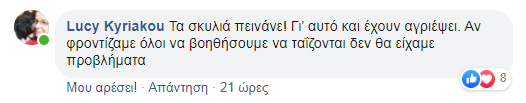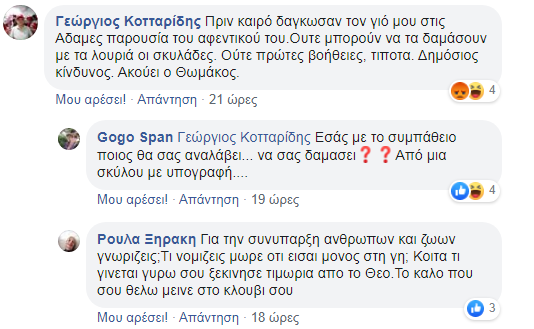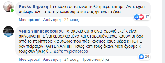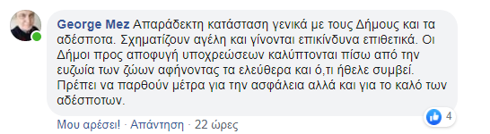 Η ανάρτηση αυτή έβαλε κυριολεκτικά φωτιά στο διαδίκτυο μιας και διάφοροι δημότες θέλησαν να πάρουν θέση, άλλοι υπέρ των ζώων και άλλοι κατά της κατάστασης που επικρατεί σε κάποια σημεία της Πόλης.
