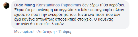 Η κατάσταση είχε ξεφύγει και ο δημοτικός σύμβουλος προχώρησε σε μια δεύτερη δημοσίευση, αναρτώντας φωτογραφία από το περιστατικό επιτιθέμενος μάλιστα σε όσους αμφισβητούσαν ότι το όλο θέμα είναι γεγονός και όχι μύθευμα.