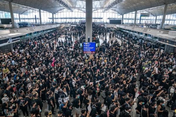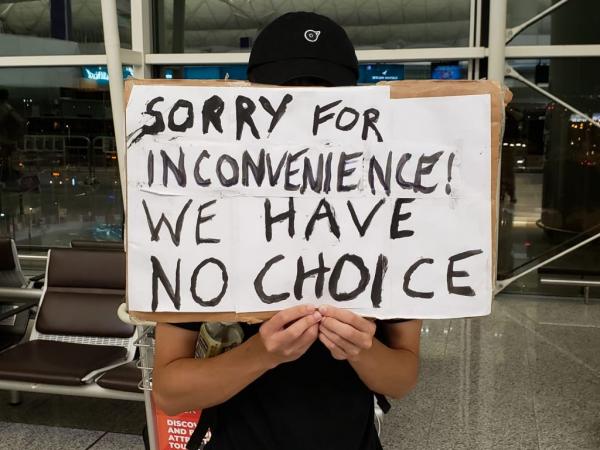 Νωρίτερα το αεροδρόμιο είχε ανοίξει, την ίδια ώρα που διαδηλωτές, ντυμένοι στα μαύρα, φωνάζουν συνθήματα όπως «Ξύπνα Χονγκ Κονγκ, ξύπνα για την ελευθερία» την ώρα που επιβάτες επιβιβάζονταν στις πτήσεις τους οι οποίες έχουν καθυστερήσει από χθες, μετά την απόφαση των αρχών του αεροδρομίου να ματαιώσουν όλες τις πτήσεις. Πριν από λίγο το αεροδρομιο έκλεισε εκ νέου.