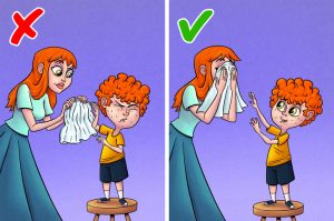 3) Σκουπίστε πρώτα το δικό σας πρόσωπό, έπειτα του παιδιού σας.