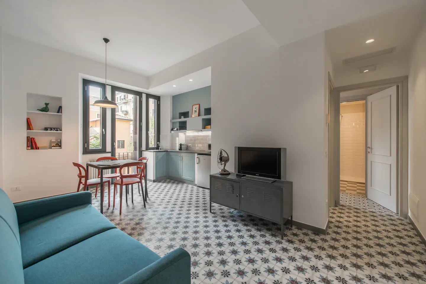 Το διαμέρισμα είναι τυπικά στο Trastevere, στο νότιο κομμάτι της συνοικίας. Στην πραγματικότητα, είναι πιο κοντά στο Testaccio, έναν κόμβο νυχτερινής διασκέδασης και γαστρονομίας. Αυτό το κάνει να έχει το πλεονέκτημα της καταπληκτικής τοποθεσίας, μακριά από το πλημμυρισμένο από τουρίστες κέντρο. Το διαμέρισμα είναι σούπερ στιλάτο, με φωτεινά πλακάκια, όμορφες αποχρώσεις του μπλε στην κουζίνα και ένα χαριτωμένο μπαλκόνι.