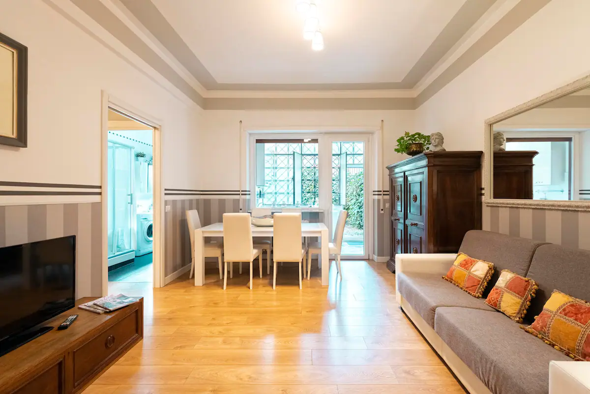 Aν ταξιδεύετε με παρέα αρκετών ατόμων και ψάχνετε κάτι ιδιαίτερο, τότε αυτή είναι η κατάλληλη επιλογή για εσάς. Μόλις φθάσετε στο χολ, θα νιώσετε ότι είστε μέλος της ιταλικής αριστοκρατίας. Πρόκειται για ένα μεγάλο και ταυτόχρονα χαριτωμένο διαμέρισμα με ιδιωτικό κήπο.