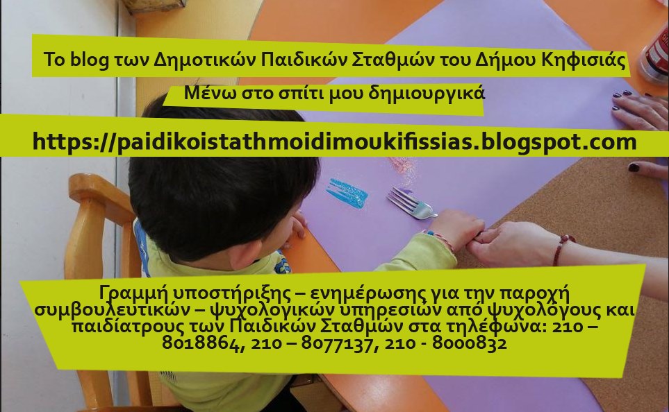 Σταθμοί Δήμου Κηφισιάς : μένω στο σπίτι μου δημιουργικά», με σκοπό την ενημέρωση γονέων και την δημιουργική απασχόληση παιδιών καθ΄