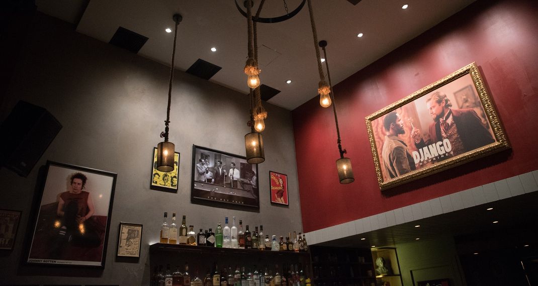 Μικρός χώρος αλλά ευχάριστος, όπου κυριαρχεί η σκούρα μπάρα και τα ψηλά δερμάτινα σκαμπό, όπως ταιριάζει στους αυθεντικούς ροκάδες, που συνδυάζεται με γκρι industrial style τοίχους γεμάτους από πόστερ καλλιτεχνών και ταινιών του μετρ. Άλλωστε, η ονομασία προέρχεται από την ομώνυμη ταινία του αγαπημένου σκηνοθέτη, όπου ο Τζάνγκο ο τιμωρός κερδίζει την ελευθερία του και αποφασίζει να πάρει πίσω τη σύζυγό του και τη χαμένη του αξιοπρέπεια.