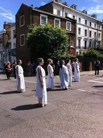 φορώντας τους χιτώνες τους και ενδεδυμένες με τα παραδοσιακά μας φορέματα έφτασαν στο Λονδίνο, πήραν το Μετρό κι έφτασαν στο Βρετανικό Μουσείο,