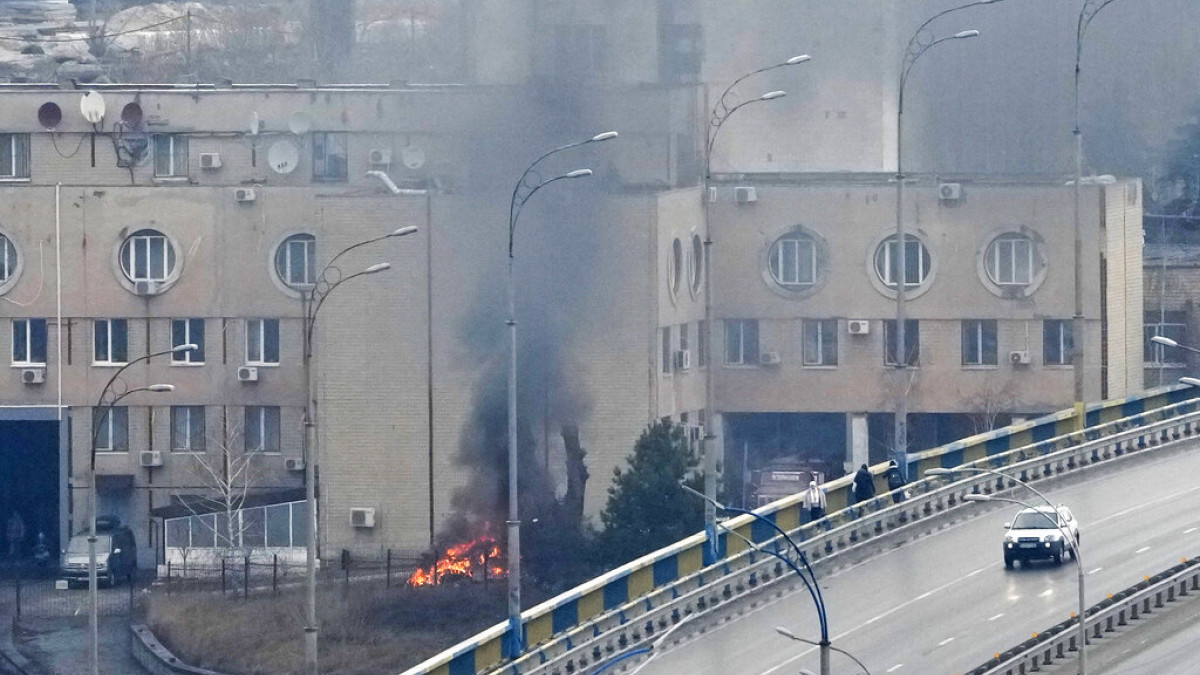 Καθώς περνούσαν οι ώρες, οι ρωσικές δυνάμεις φαινόταν ότι πλησίαζαν στο Κίεβο, όπου έχει επιβληθεί απαγόρευση της κυκλοφορίας. Οι ουκρανικές αρχές διαβεβαίωναν ότι χερσαίες ρωσικές δυνάμεις βρίσκονταν στα περίχωρα της πρωτεύουσας και ότι ένα στρατιωτικό ουκρανικό αεροσκάφος, με 14 επιβαίνοντες, συνετρίβη στην περιοχή.