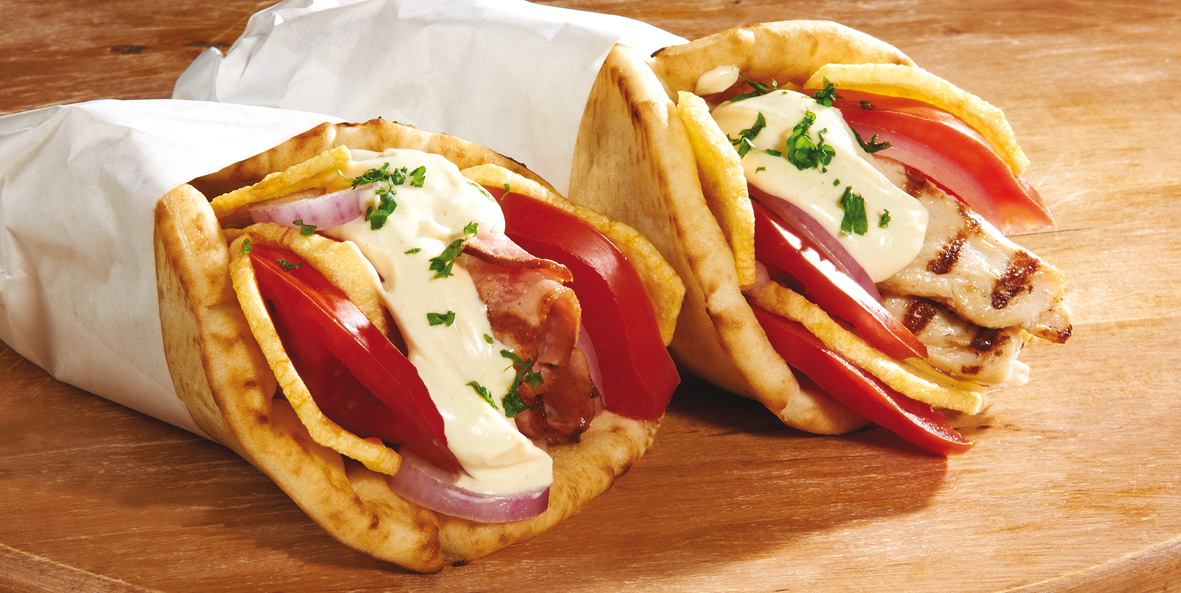 τα χειροποίητα μπιφτέκια κοτόπουλου, τα τυλιχτά χειροποίητα σουβλάκια