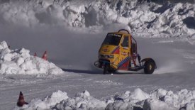 Παιχνίδια πλαγιολίσθησης στον πάγο με ένα φαινομενικά αθώο τρίκυκλο Piaggio Ape, το οποίο διαθέτει ένα τρικύλινδρο μοτέρ 106 ίππων αντί του κανονικού μονοκύλινδρου των μόλις 8,5 αλόγων!